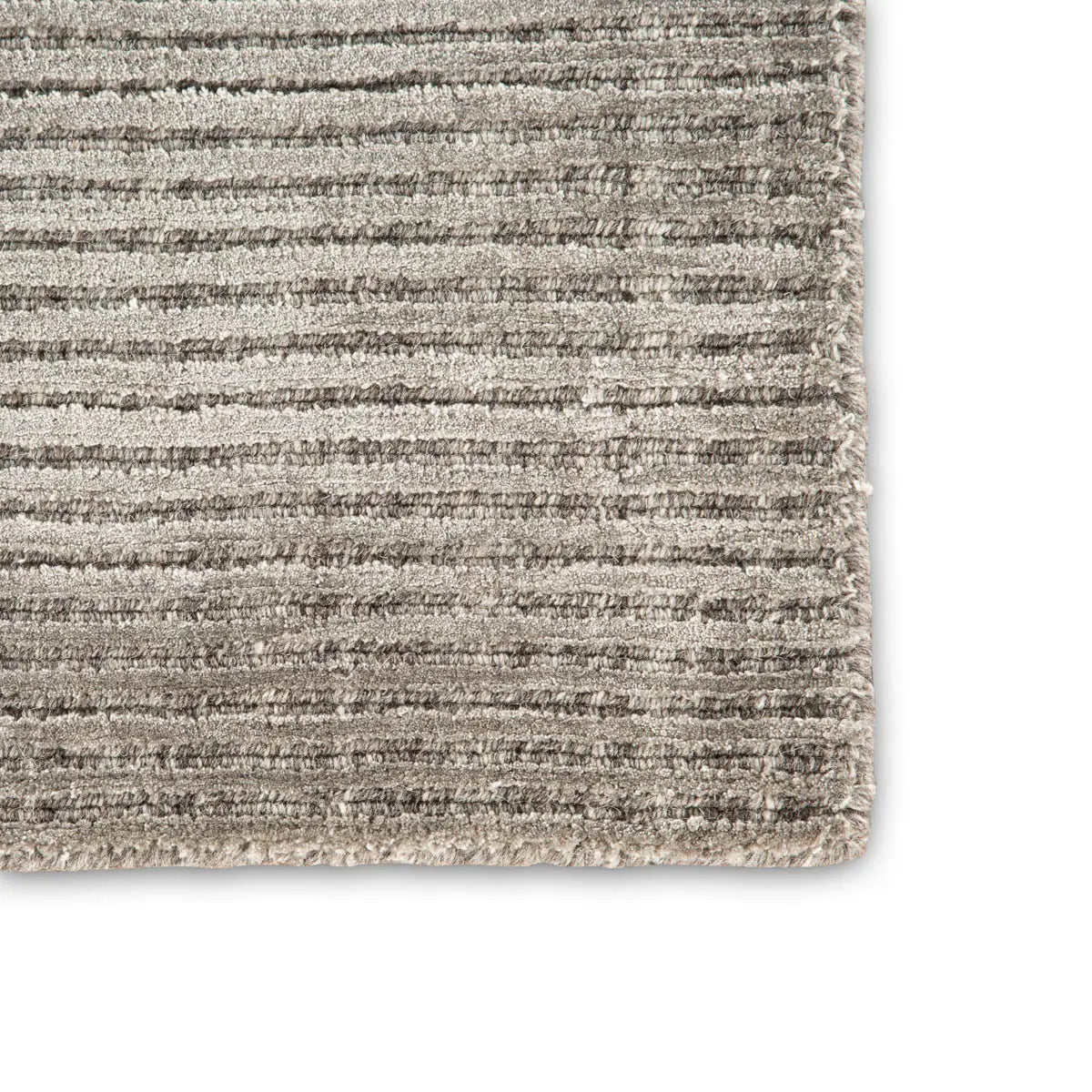 This sleek hand-loomed area rug boasts a lustrous dark gray colorway with texture-rich stripes creating a ridged high-low feel. In a soft combination of wool and viscose, this neutral accent lends versatile style to modern homes.