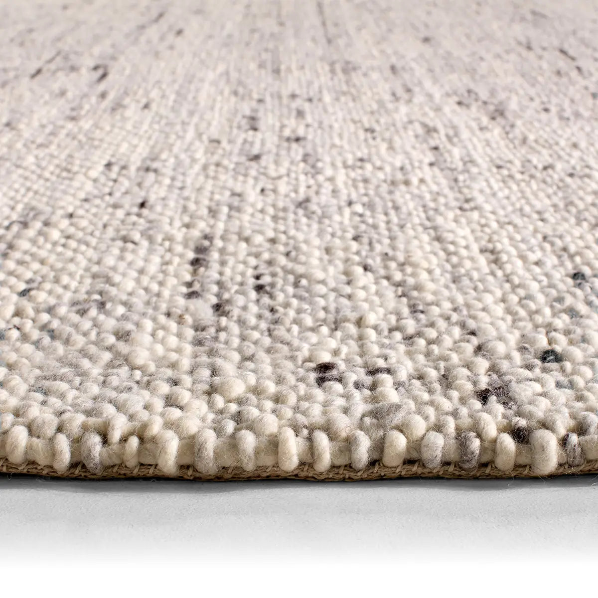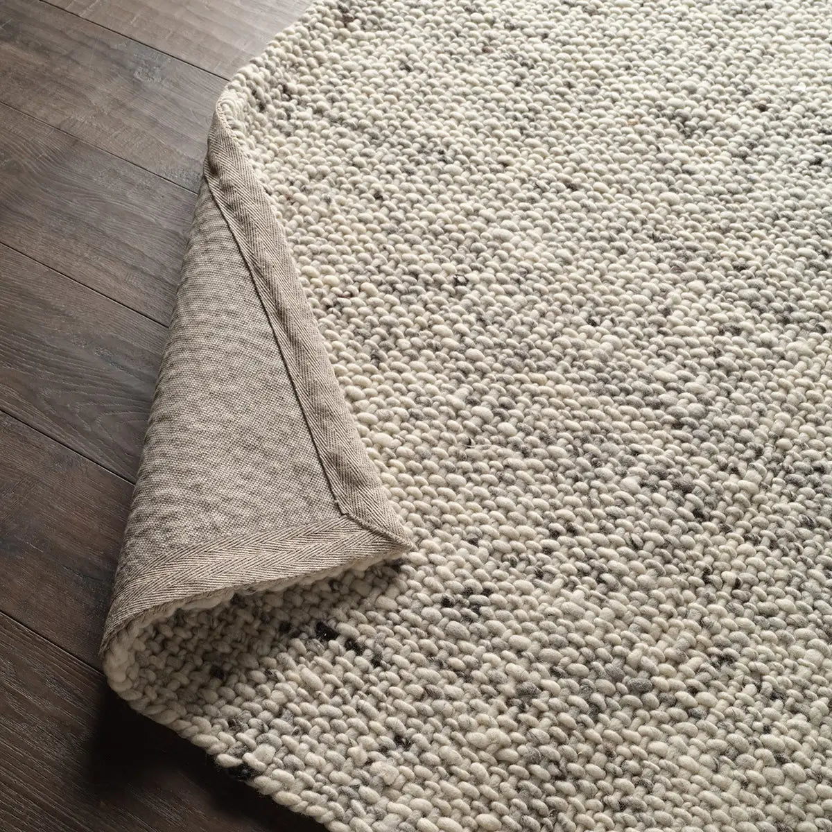 The Cambridge collection artfully blends the textured charm of a basket weave with the understated elegance of neutral tones. Crafted from handspun and handwoven wool, the Season rug features a soft cream and tan palette that brings warmth and sophistication to contemporary spaces. Measuring approximately 1 1/8" in thickness, it is constructed with 100% wool and a cotton backing, made in India. Please note, sizes may vary by ±3", and slight color differences are natural due to the handcrafted wool.