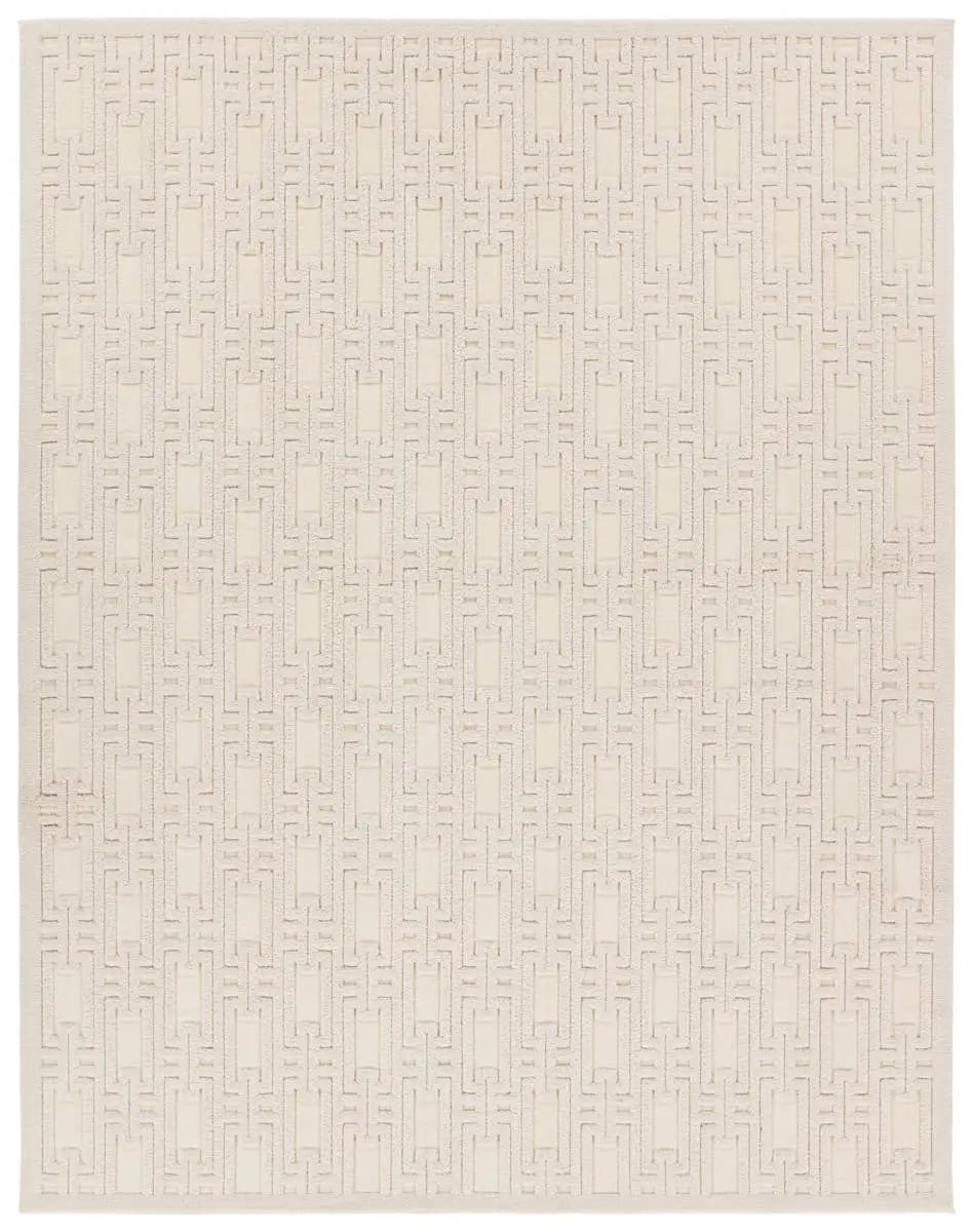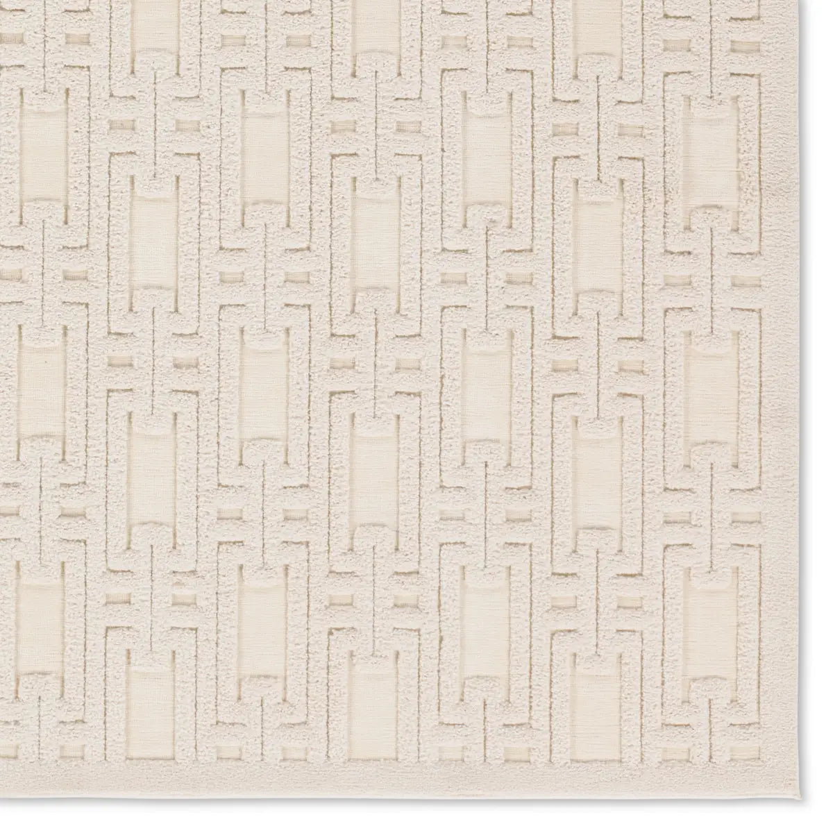 The Petros collection features a lavishly soft feel and unique high-low pile that suggests stunning movement and cloud-like plushness, providing the perfect soft landing and coveted texture to a space. This collection is impressively versatile with an inviting cream colorway to complement an array of styles. The Torean design features a modern tile and chain design, created with high-low pile for notable texture. Crafted in Turkey with a polyester and chenille blend, this plush area rug thrives in low traffic spaces of the home such as bedrooms and formal living rooms.