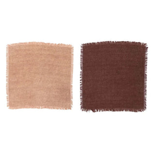 Stonewashed Linen Napkins w/ Fringe, Putty & Aubergine Color, Set of 4