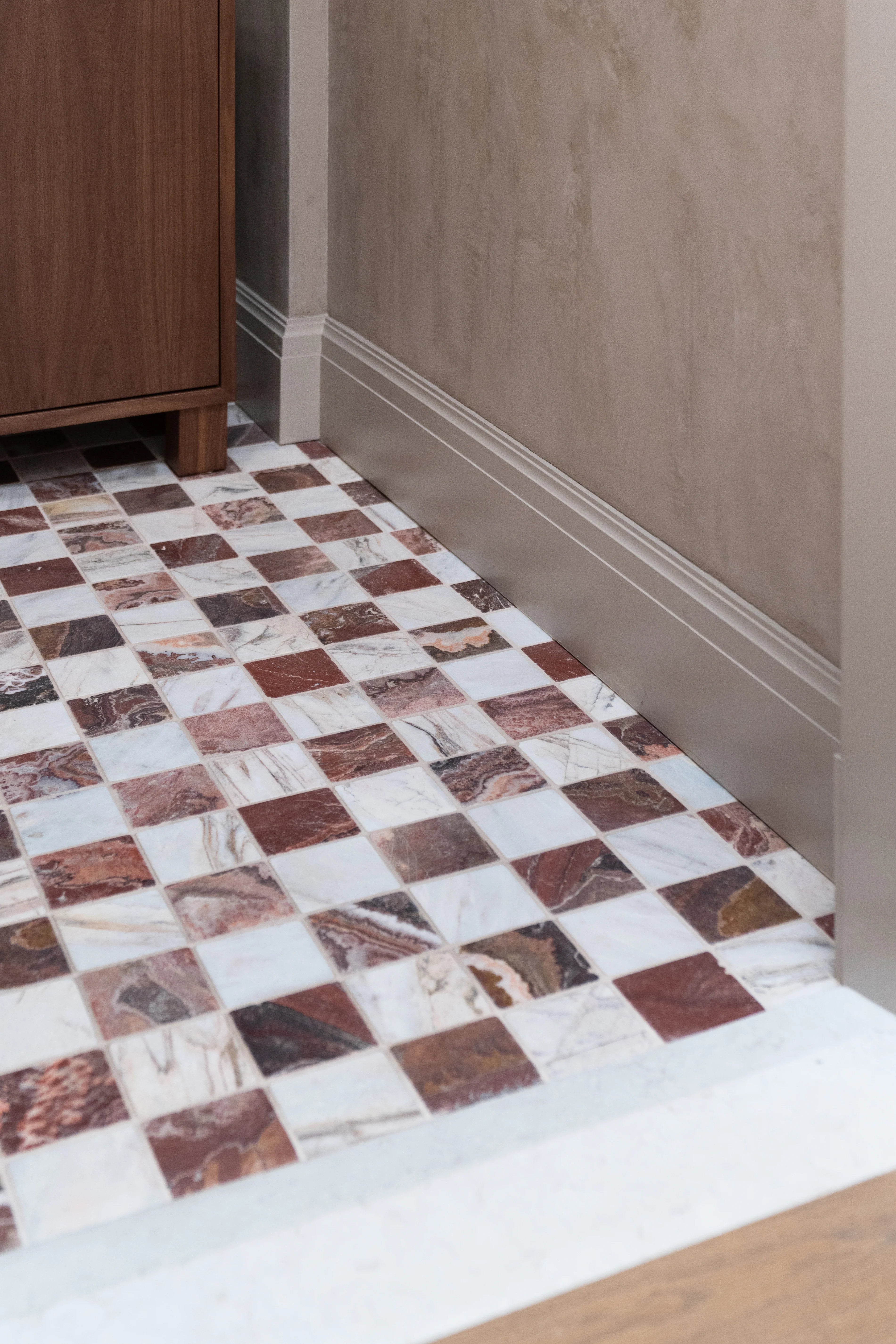 Rosewood is a one of a kind marble quarried in Mexico. The stone is defined by an off-white background with eye-catching veining unique in every piece. The colors in this stone are several but notably burgundy, rose and soft blues.