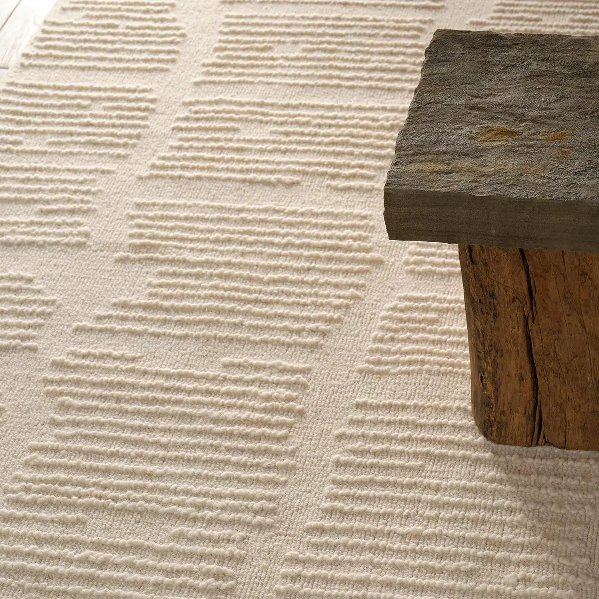 Made of 100% all-natural wool, the Radha design enjoys an understated elegance that is satisfying in its simplicity. Intricate overtufting brings a dynamic high-low pile to life, adding dimension. Easy to care for and undoubtedly modern, it exudes a quiet strength.