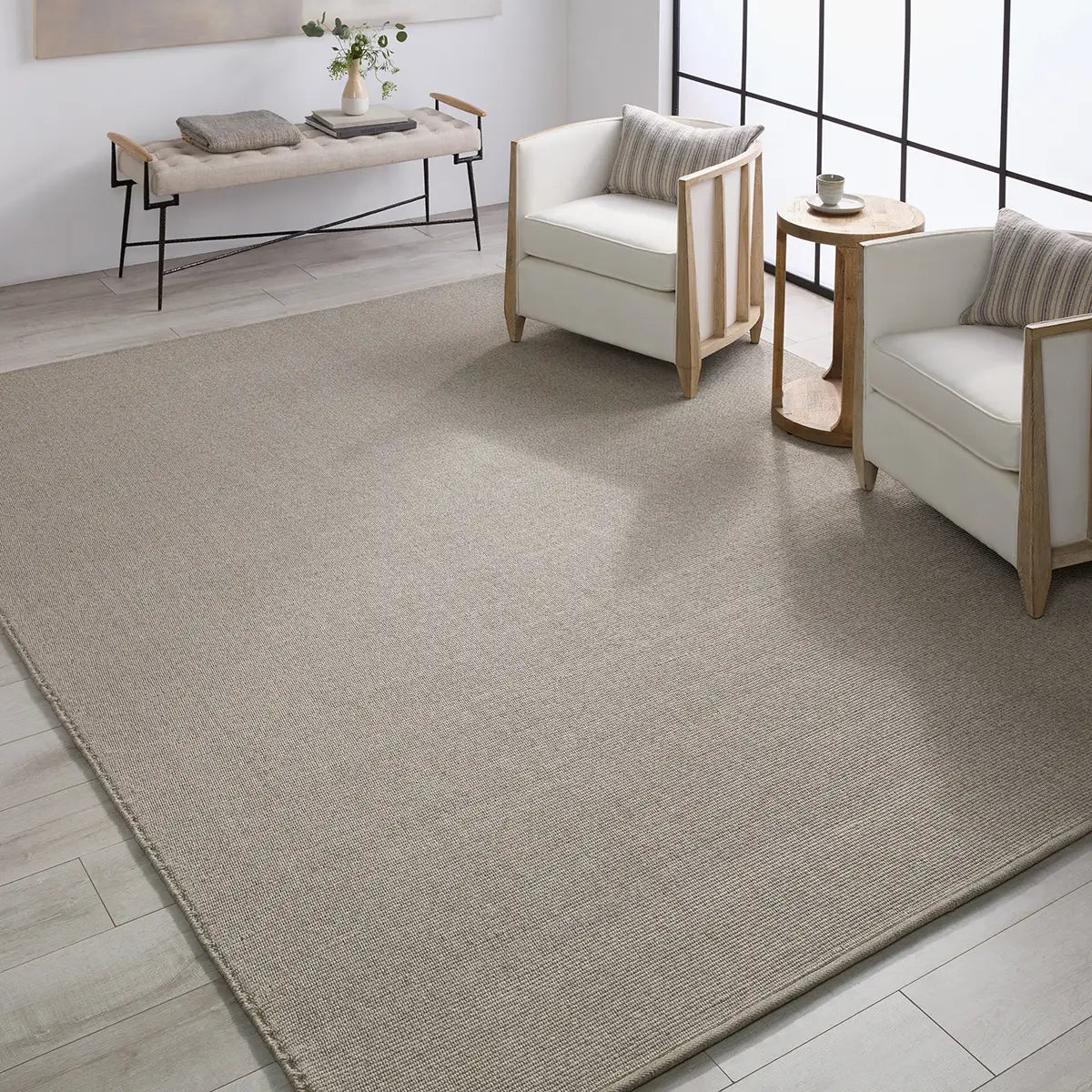 The handwoven Flint collection showcases solid, handwoven designs with a combination of elevated and durable fibers. The Texel rug features a solid, taupe design with a beige border that provides texture and dimension to any space. The 100% polypropylene fibers are both stain resistant and water resistant, perfect for indoor and outdoor spaces alike.