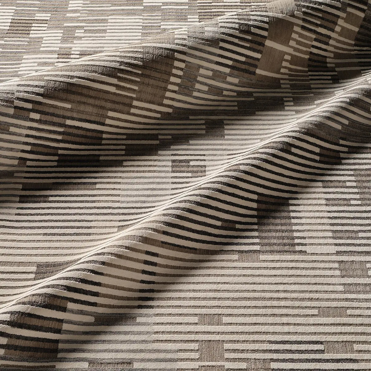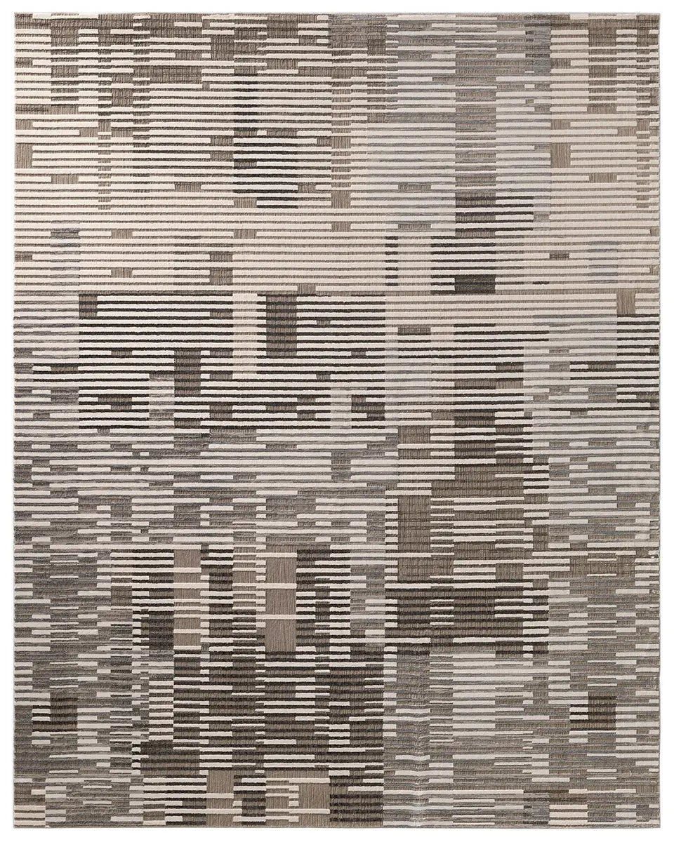 A modern statement for on-trend homes, the Graphite collection brings bold interest and dimension to contemporary interiors. The densely woven polyester and polypropylene blend lends a durable accent to heavily trafficked spaces. The Gravity design features a striped, abstract design in moody hues of taupe, light gray, dark gray, and cream. The high-low pile provides texture and sheen to bedrooms, living rooms, offices, and entryways.