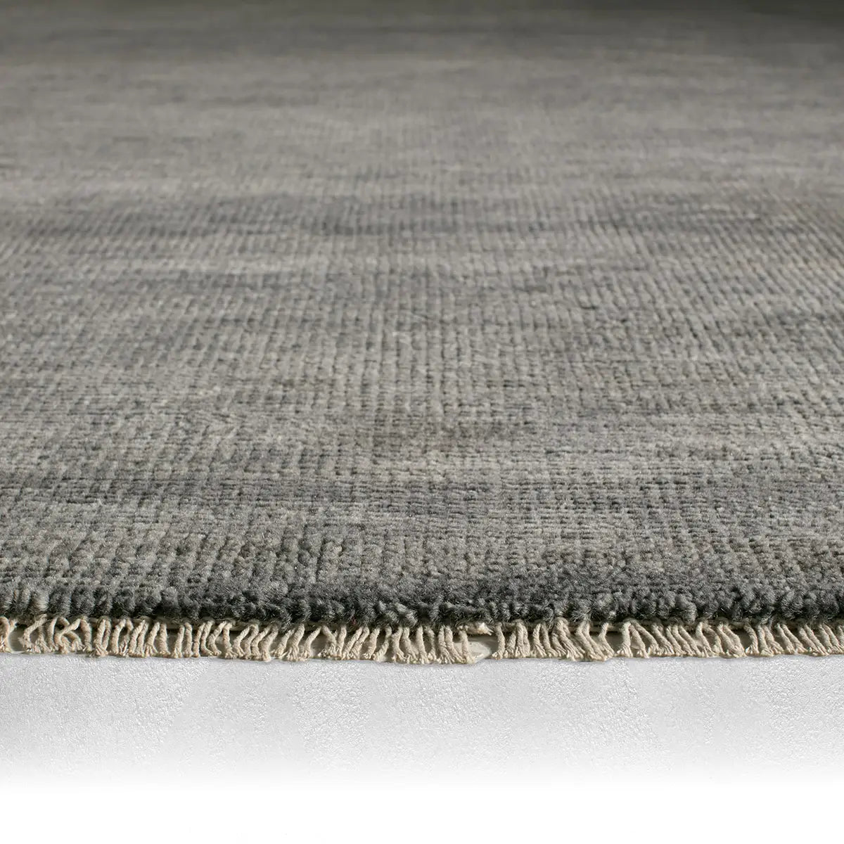 The sophisticated Saga collection lends balance and a relaxed, grounding vibe to modern interiors. The Origin area rug anchors a space with a solid, subtly striated design in a dark gray colorway. Hand knotted by skilled artisans, this durable wool accent marries simplicity and luxury with an exceptional quality.