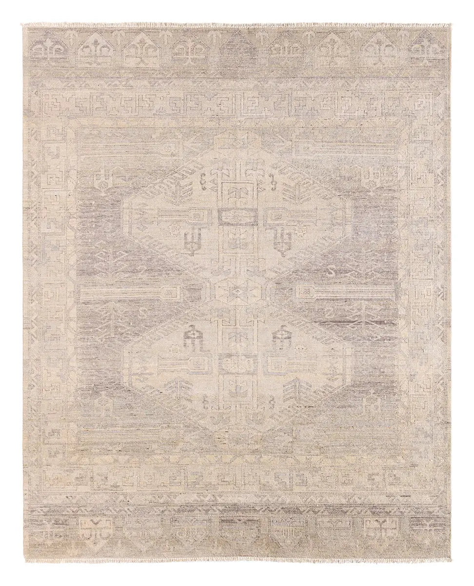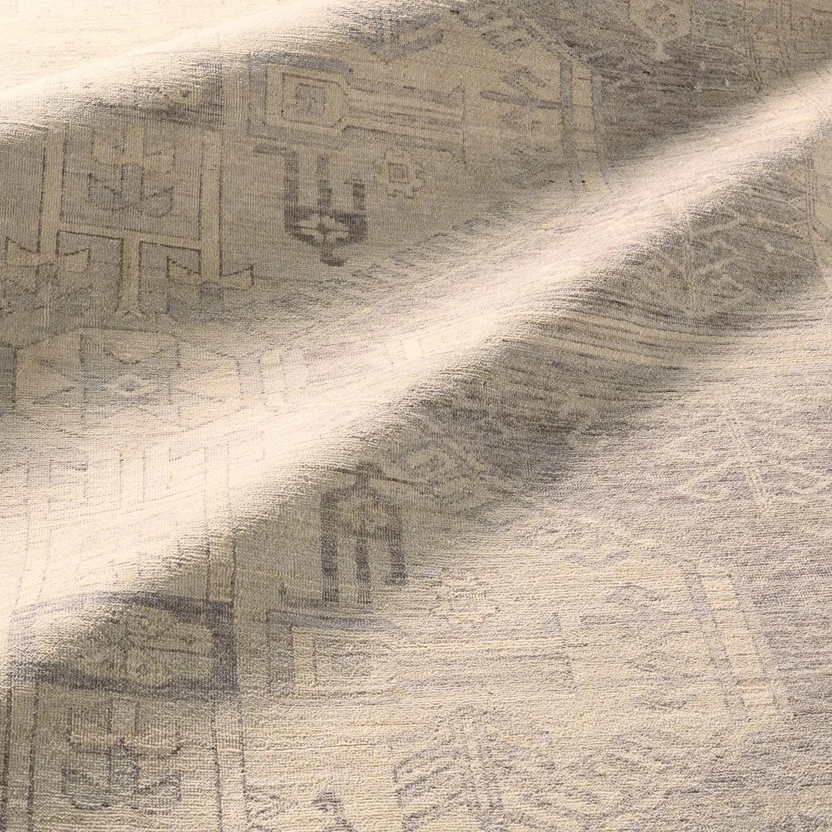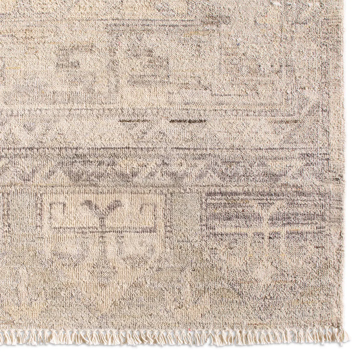 Whimsical colorways combine with the opulent detail of a traditional-inspired Kars pattern-- the Someplace in Time collection represents nostalgia and progression, heritage and the contemporary. The Keon rug's cool gray, and ivory details ground spaces with luxe appeal and an exceptional hand-knotted quality. Crafted of handspun wool, this artisan-made rug boasts an authentic, timeworn look. Obtaining both a Nest Seal and RugMark certification, this global area rug brings ethical, handmade luxury to the home.