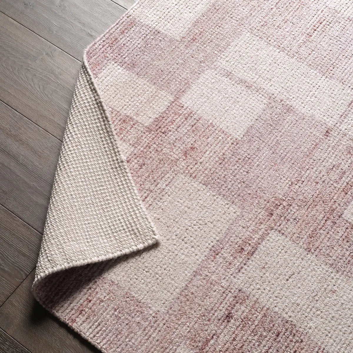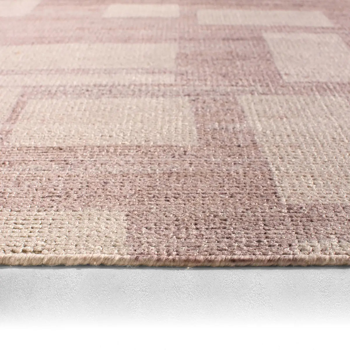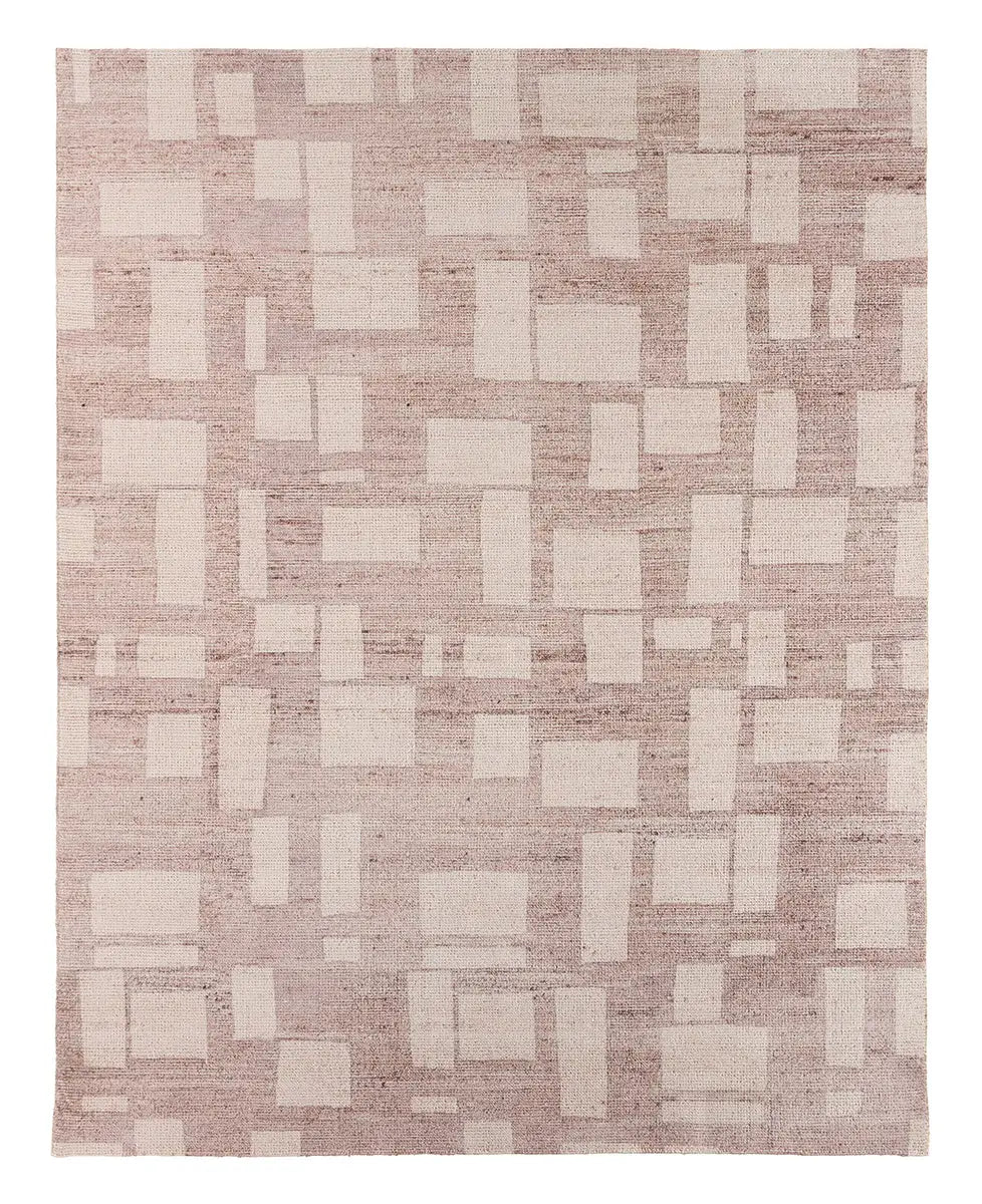 The Armes design features an abstract modern geometric look in shades of tan that’s sure to make a statement. A digital print is layered on a handwoven base, offering durability and easy care—with a sophisticated, high-end look.