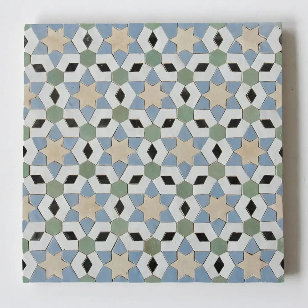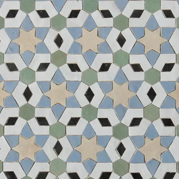 Snow, Clay, Avocado, Blue Grass & Black - Moroccan Zellige Stars Mosaic by Tilesofezra